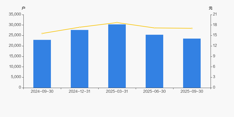 截至2025年9月30日,公司最新总股本为3.05亿股,且均为流通股。户均持有流通股数量由上期的1.2万股上升至1.3万股,户均流通市值22.14万元。