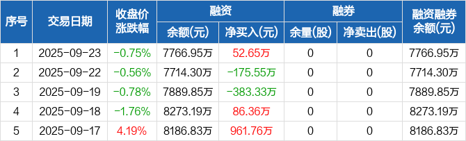 泰鸿万立:融资净买入52.65万元,融资余额7766.95万元(09-23)
