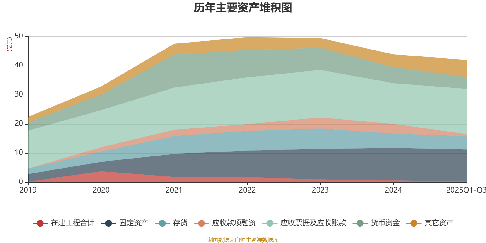 资产重大变化方面,截至2025年三季度末,公司应收款项融资较上年末减少77.89%,占公司总资产比重下降5.82个百分点;应收票据及应收账款较上年末增加10.91%,占公司总资产比重上升5.07个百分点;交易性金融资产合计较上年末增加277.24%,占公司总资产比重上升3.41个百分点;货币资金较上年末减少26%,占公司总资产比重下降2.87个百分点。