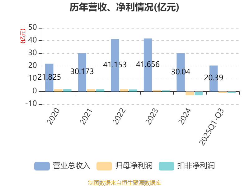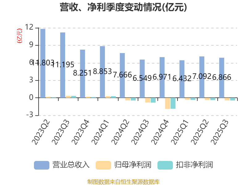 中证智能财讯赛伍技术(603212)10月30日披露2025年第三季度报告。前三季度公司实现营业总收入20.39亿元,同比下降11.61%;归母净利润亏损1.17亿元,上年同期亏损9552.73万元;扣非净利润亏损1.2亿元,上年同期亏损9912.27万元;经营活动产生的现金流量净额为1.73亿元,同比下降48.88%;报告期内,赛伍技术基本每股收益为-0.27元,加权平均净资产收益率为-2.23%。