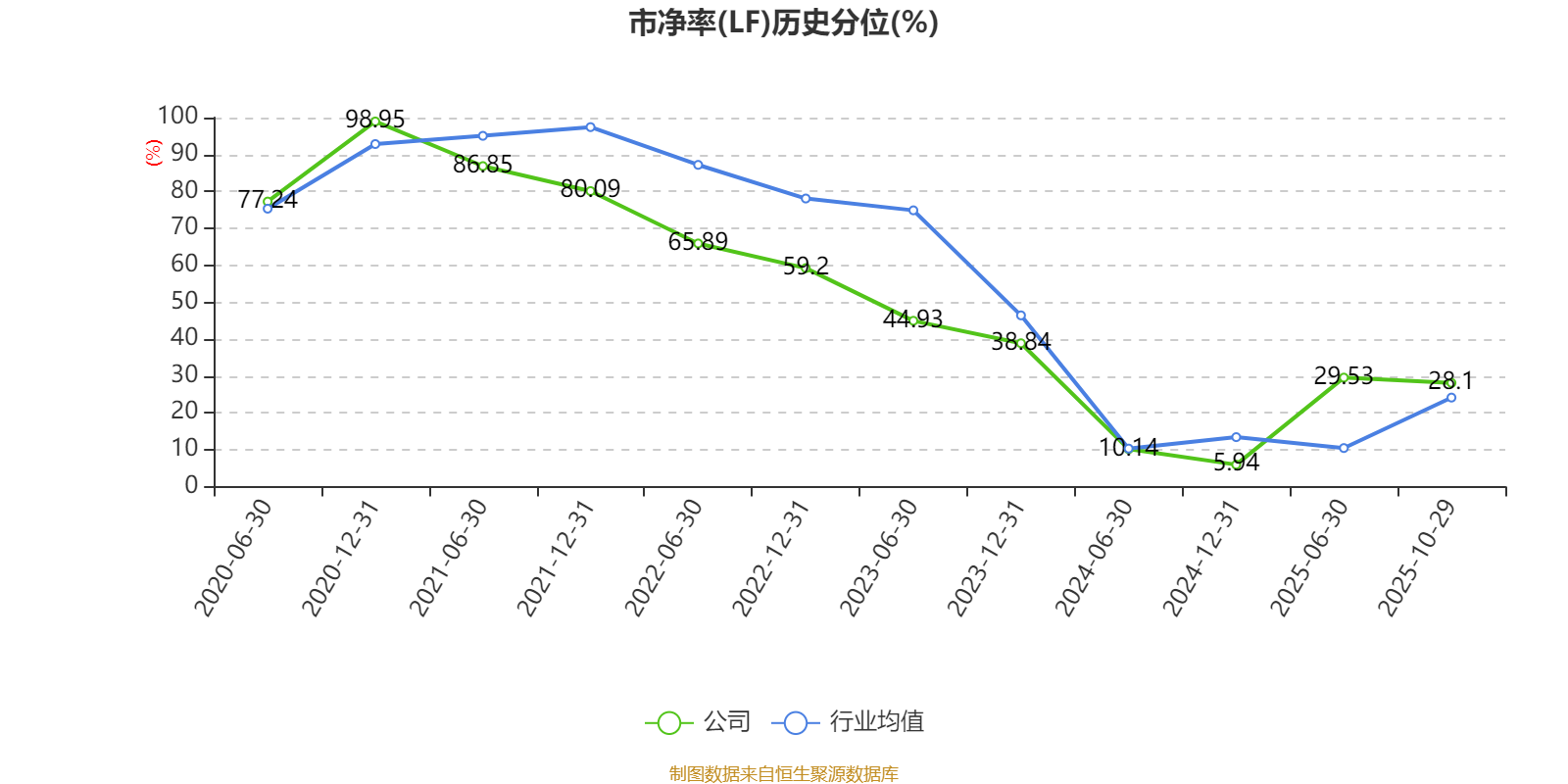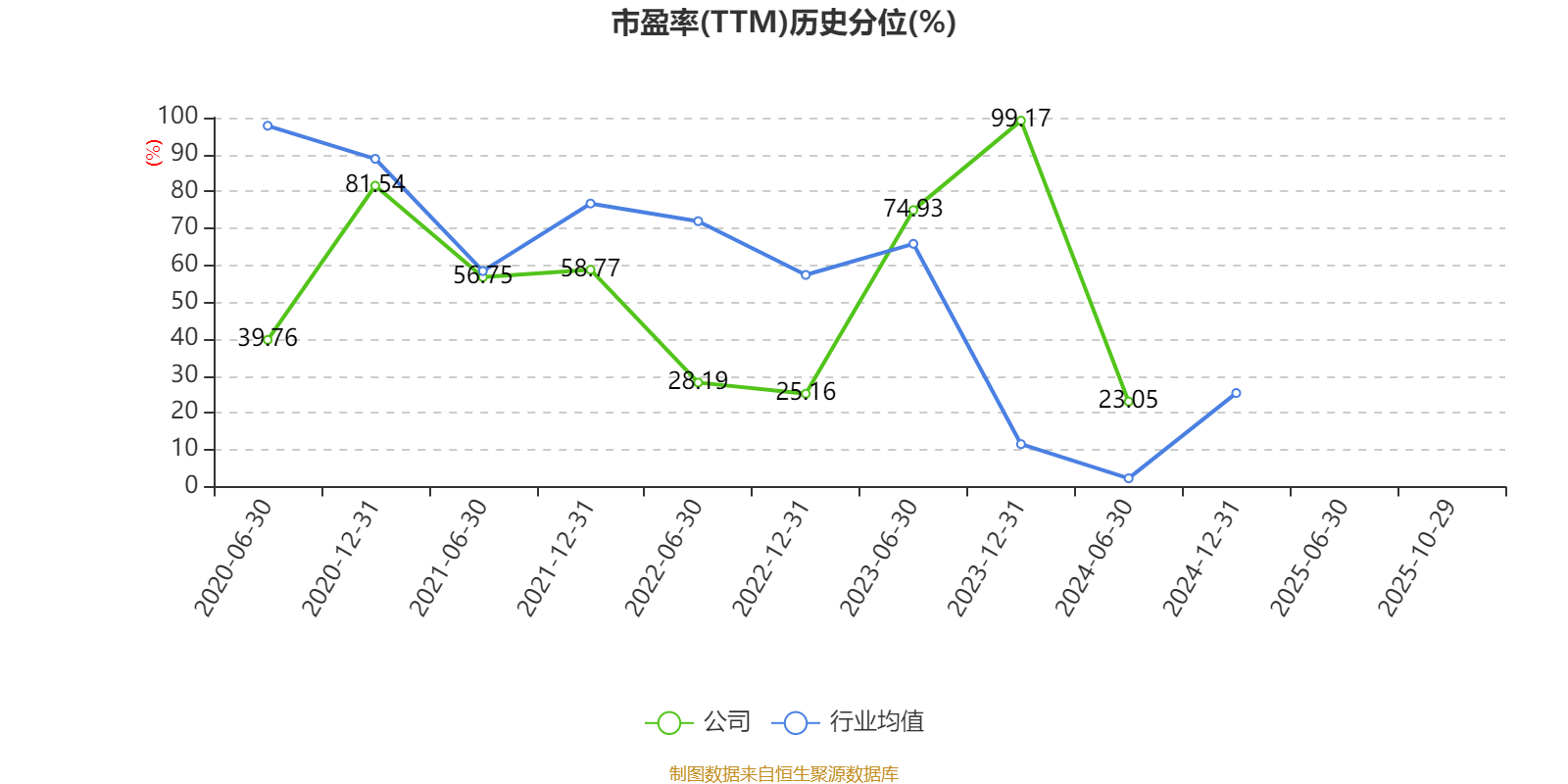 市盈率、市净率为负时,不显示当期分位数,会导致折线图中断。