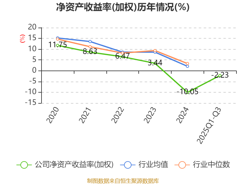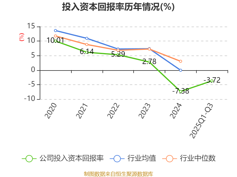 盈利能力方面, 2025年前三季度公司加权平均净资产收益率为-2.23%,同比上升1.1个百分点。公司2025年前三季度投入资本回报率为-3.72%,较上年同期下降0.73个百分点。