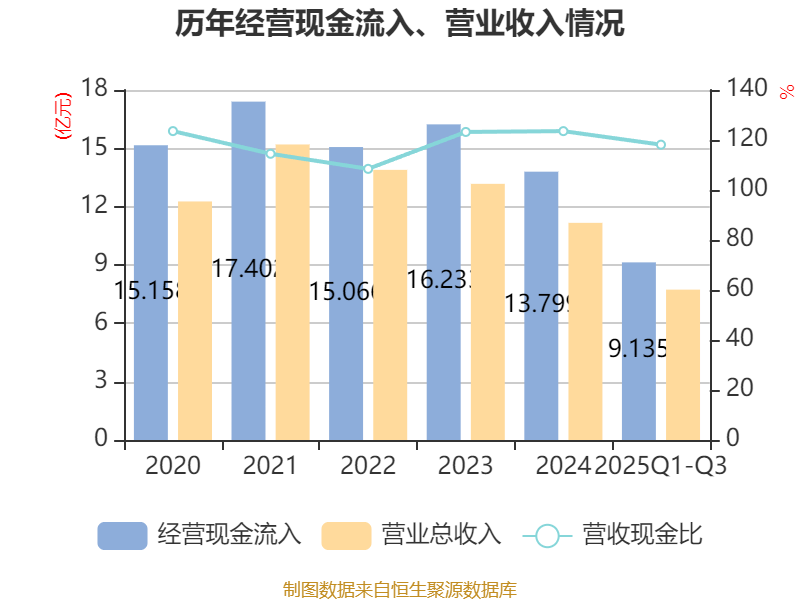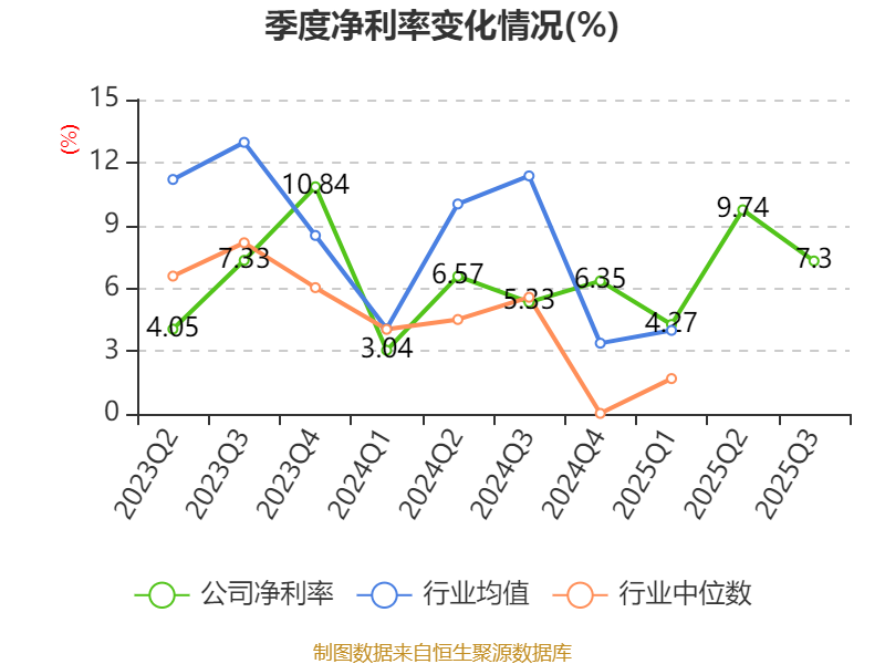 2025年前三季度,公司流动比率为3.43,速动比率为3.25。