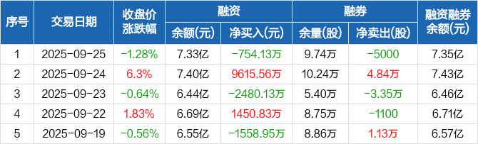 中贝通信:融资净偿还754.13万元,融资余额7.33亿元(09-25)