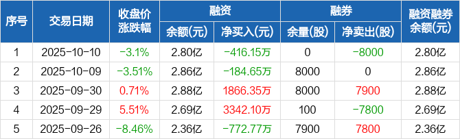 济民健康:融资净偿还416.15万元,融资余额2.8亿元(10-10)