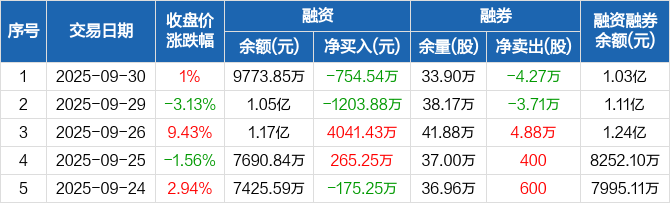 新凤鸣:融资净偿还754.54万元,融资余额9773.85万元(09-30)