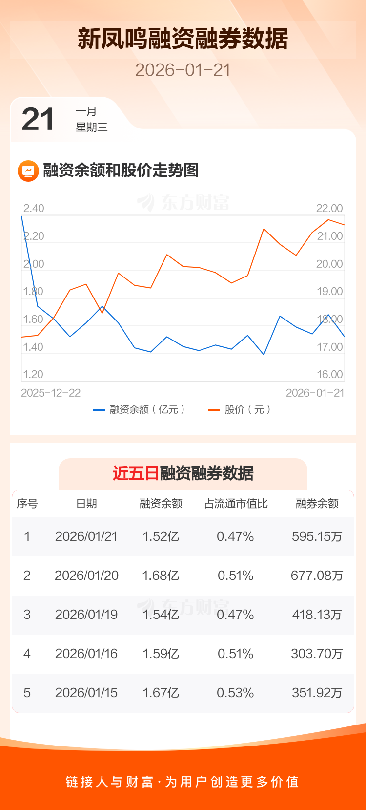交易所最新数据显示,新凤鸣于2026年1月21日获融资买入2891.50万元,融资偿还4457.51万元,当日融资净偿还1566.01万元。目前,该股融资余额1.52亿,占流通市值比例为0.47%。