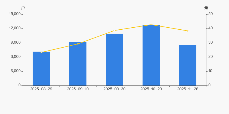 2025年8月29日至今,公司股东户数显著增长,区间涨幅为20.52%。2025年8月29日至2025年11月28日区间股价上涨65.14%。