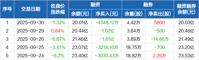景旺电子:连续5日融资净偿还累计3.69亿元(09-30)