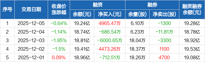 景旺电子:融资净买入4965.47万元,融资余额19.24亿元(12-05)