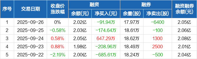 大参林:融资净偿还91.94万元,融资余额2.02亿元(09-26)
