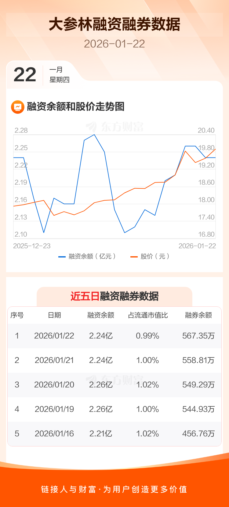 交易所最新数据显示,大参林于2026年1月22日获融资买入403.15万元,融资偿还324.14万元,当日融资净买入79万元。目前,该股融资余额2.24亿,占流通市值比例为0.99%。