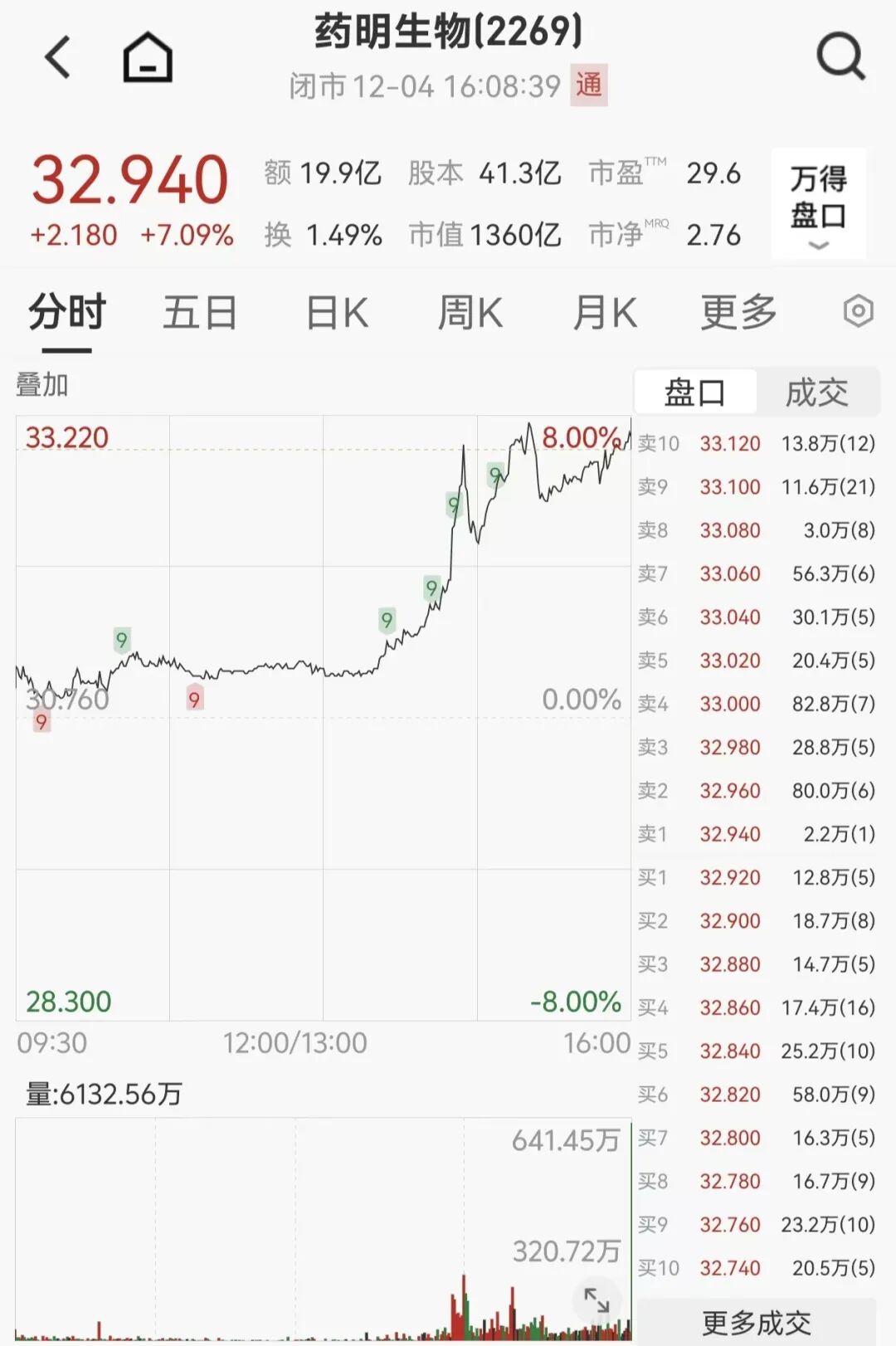 12月4日,药明生物、药明康德双双领涨蓝筹。药明生物一度大涨8%,全天收于32.94港元/股,上涨7.09%。公司此前宣布,将全球服务网络与专业业务能力拓展至中东地区。
