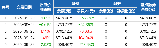 技源集团:融资净偿还263.76万元,融资余额6476万元(09-29)