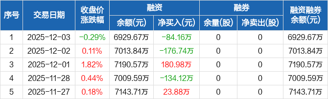 技源集团:融资净偿还84.16万元,融资余额6929.67万元(12-03)