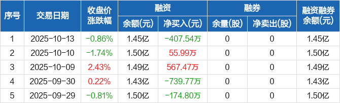 永杰新材:融资净偿还407.54万元,融资余额1.45亿元(10-13)