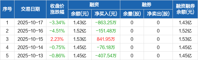 永杰新材:融资净偿还863.25万元,融资余额1.43亿元(10-17)