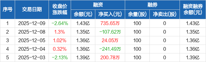 众辰科技:融资余额1.43亿元,创近一年新高(12-09)