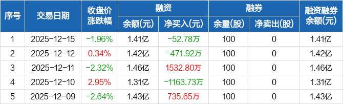 众辰科技:融资净偿还52.78万元,融资余额1.41亿元(12-15)