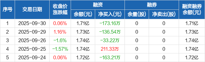 恒兴新材:连续3日融资净偿还累计342.92万元(09-30)