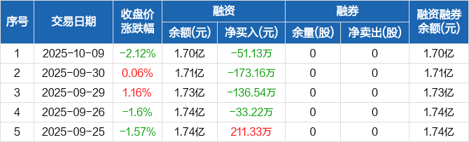 恒兴新材:连续4日融资净偿还累计394.06万元(10-09)
