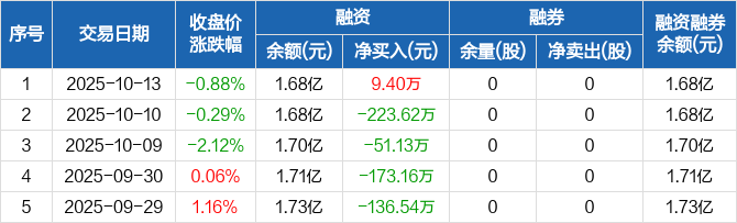 恒兴新材:融资净买入9.4万元,融资余额1.68亿元(10-13)