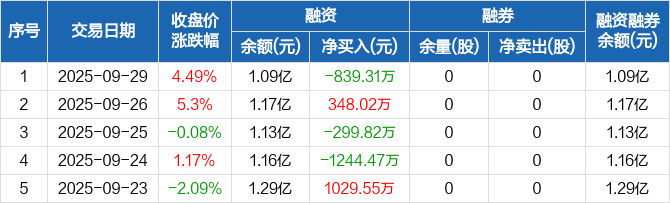键邦股份:融资净偿还839.31万元,融资余额1.09亿元(09-29)