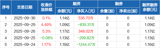 键邦股份:融资净买入536.7万元,融资余额1.14亿元(09-30)