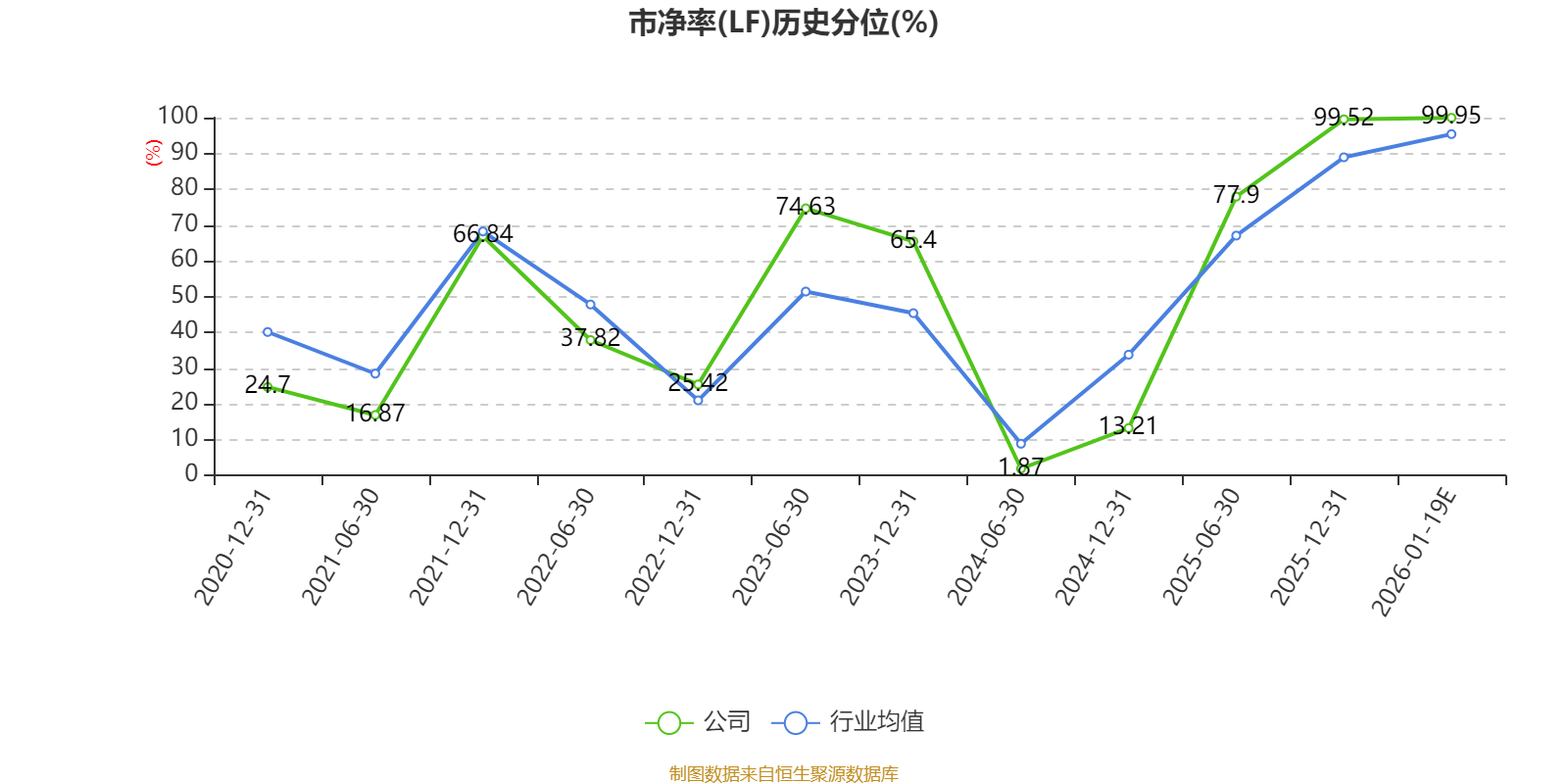 市盈率、市净率为负时,不显示当期分位数,会导致折线图中断。