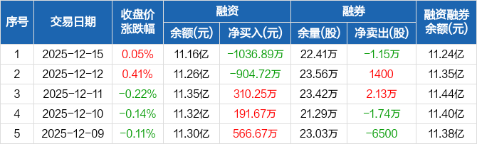 海天味业:融资净偿还1036.89万元,融资余额11.16亿元(12-15)
