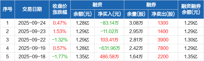 苏盐井神:融资净偿还83.14万元,融资余额1.28亿元(09-24)