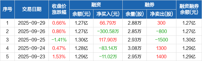 苏盐井神:融资净买入66.79万元,融资余额1.27亿元(09-29)