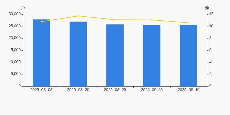 2025年8月8日至今,公司股东户数有所下降,区间跌幅为7.96%。2025年8月8日至2025年9月19日区间股价下降1.76%。