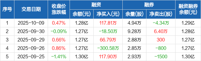 苏盐井神:融资净买入117.81万元,融资余额1.28亿元(10-09)
