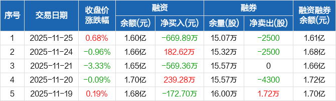 苏盐井神:融资净偿还669.89万元,融资余额1.6亿元(11-25)