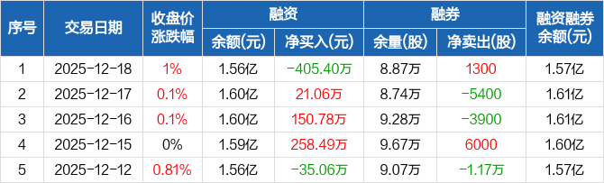 苏盐井神:融资净偿还405.4万元,融资余额1.56亿元(12-18)