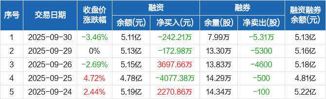 旭升集团:融资净偿还242.21万元,融资余额5.11亿元(09-30)
