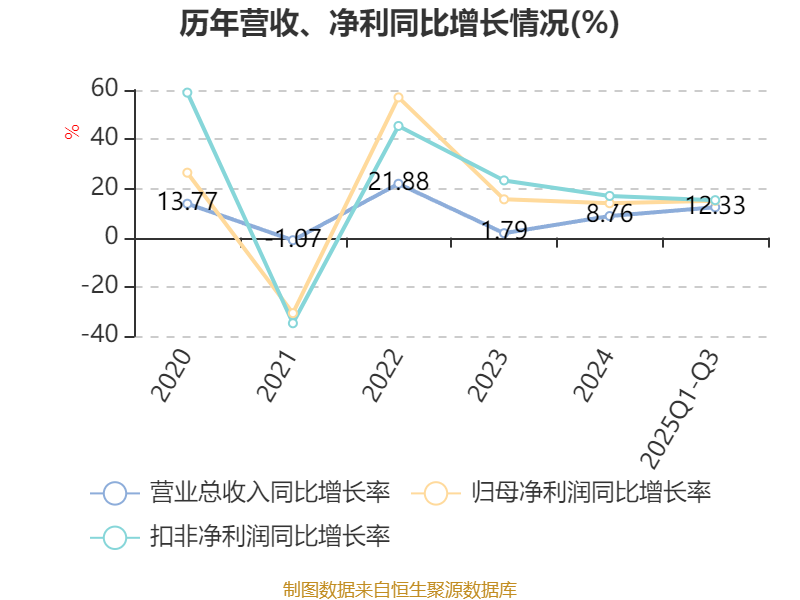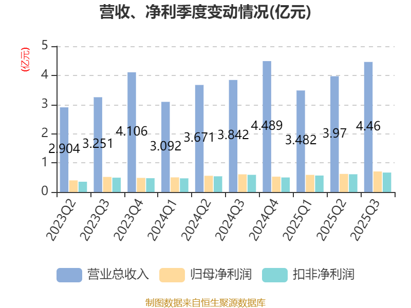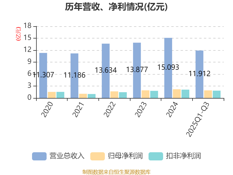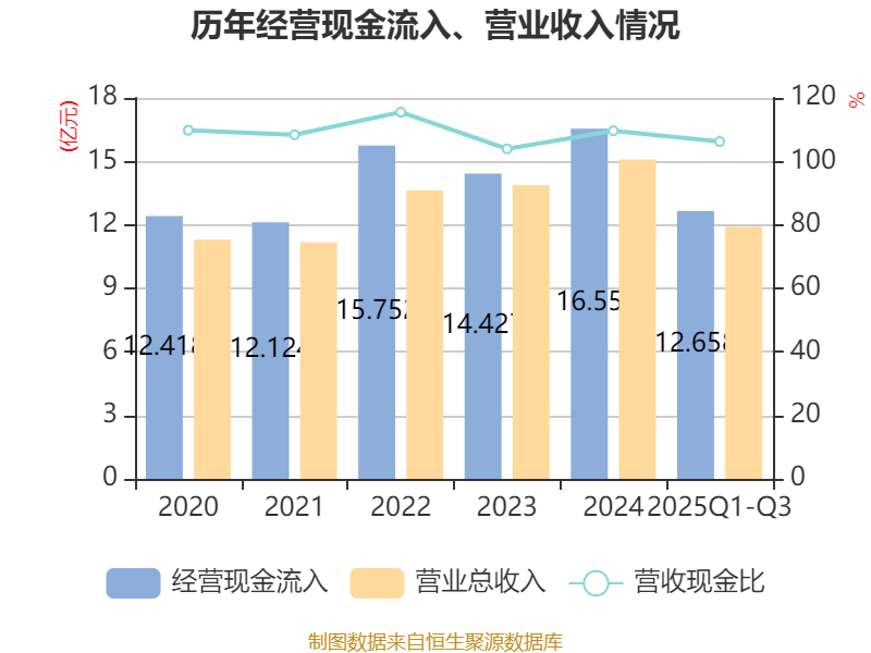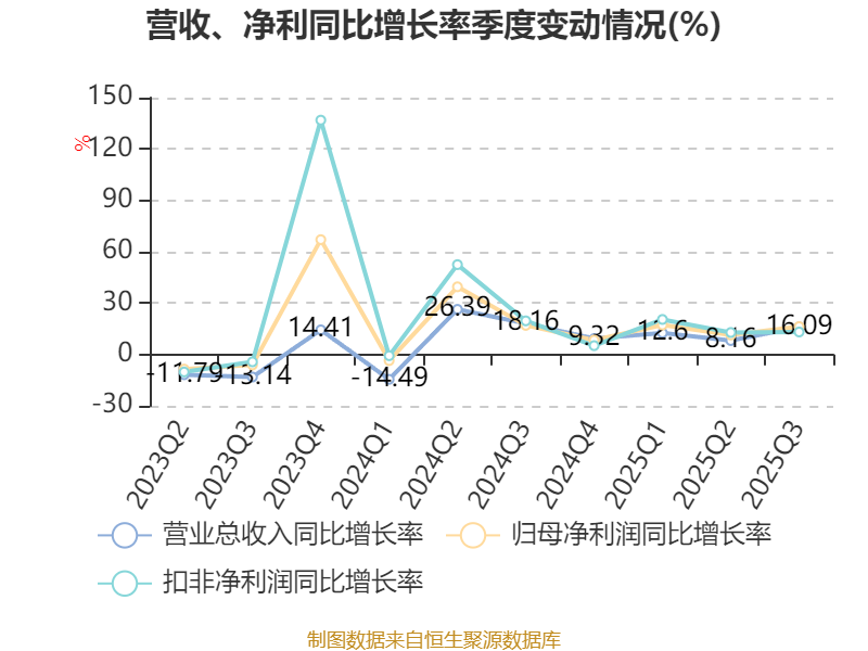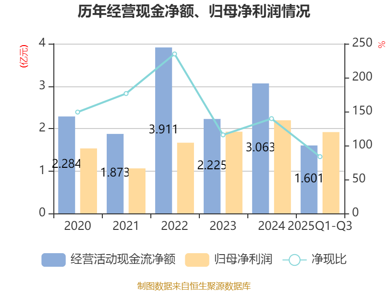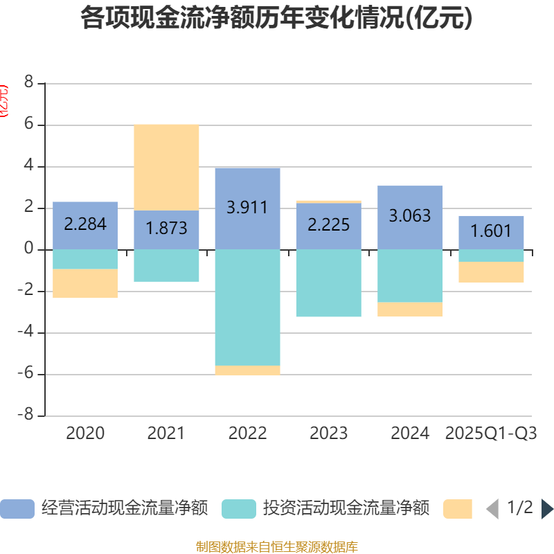 2025年前三季度,公司经营活动现金流净额为1.6亿元,同比增长33.54%;筹资活动现金流净额-9990.36万元,同比减少9968.74万元;投资活动现金流净额-6013.72万元,上年同期为-1.67亿元。