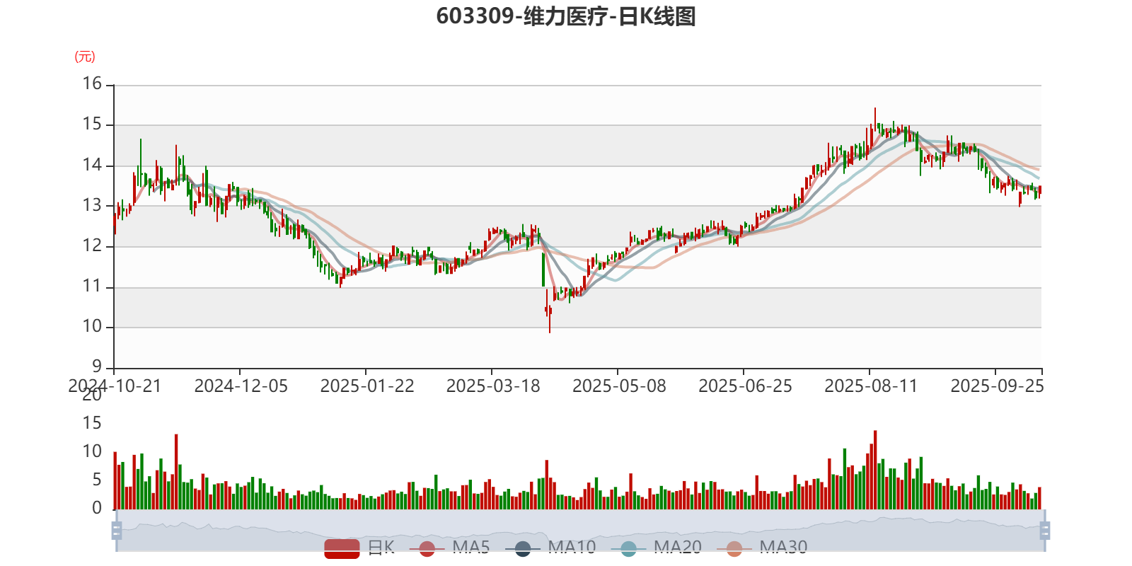 中证智能财讯维力医疗(603309)10月21日披露2025年第三季度报告。前三季度公司实现营业总收入11.91亿元,同比增长12.33%;归母净利润1.92亿元,同比增长14.94%;扣非净利润1.84亿元,同比增长15.22%;经营活动产生的现金流量净额为1.6亿元,同比增长33.54%;报告期内,维力医疗基本每股收益为0.65元,加权平均净资产收益率为10.00%。