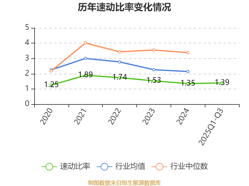 2025年前三季度,公司流动比率为1.77,速动比率为1.39。