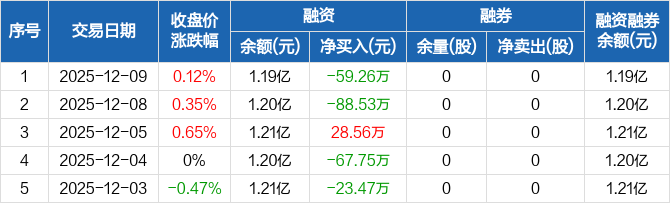 巍华新材:融资净偿还59.26万元,融资余额1.19亿元(12-09)