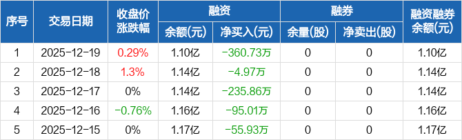 巍华新材:连续5日融资净偿还累计752.49万元(12-19)