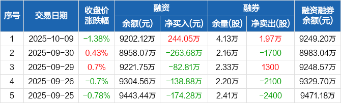 天味食品:融资净买入244.05万元,融资余额9202.12万元(10-09)