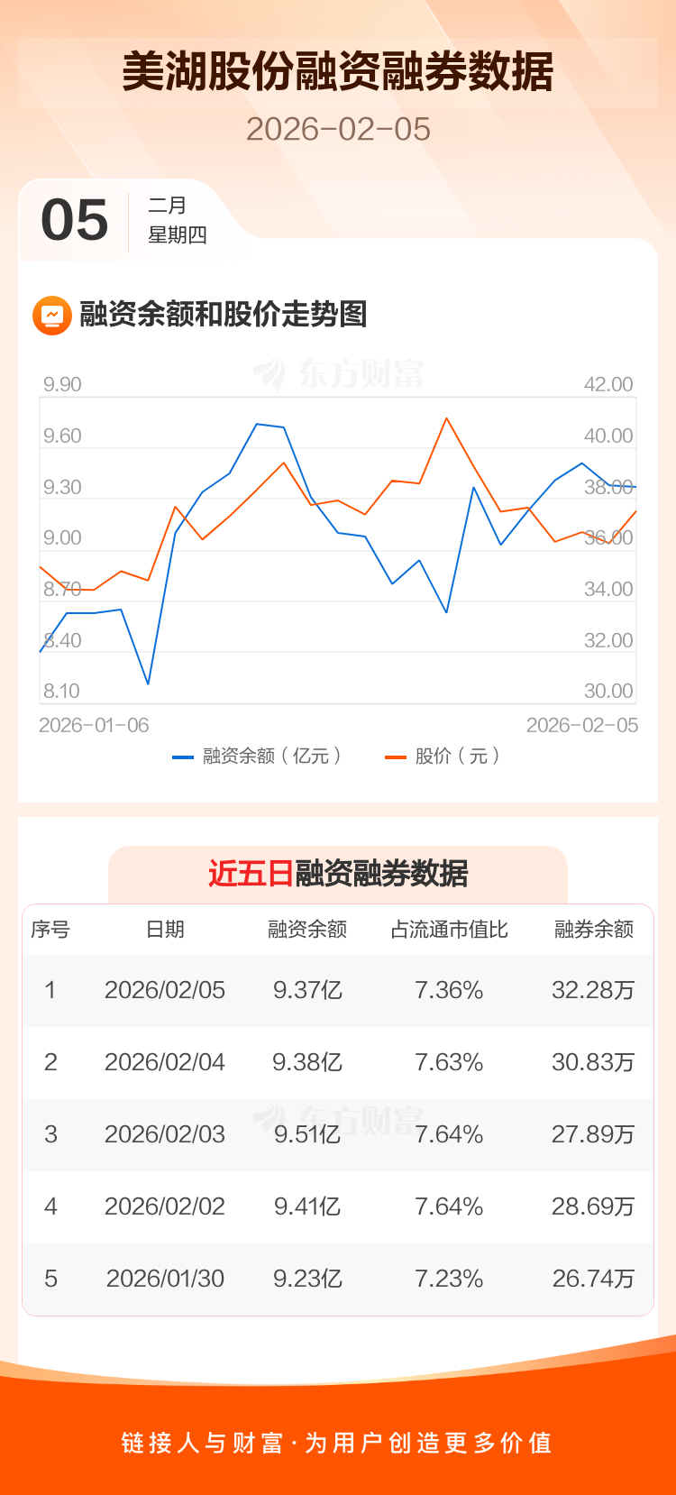 交易所最新数据显示,美湖股份于2026年2月5日获融资买入7934.05万元,融资偿还8086.99万元,当日融资净偿还152.94万元。目前,该股融资余额9.37亿,占流通市值比例为7.36%。