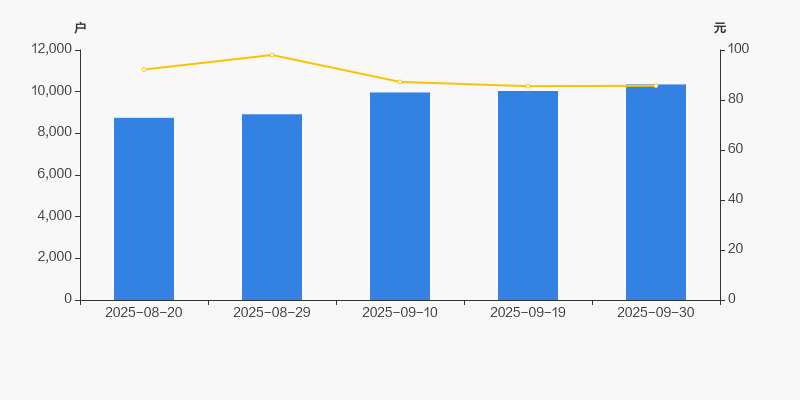 截至2025年9月30日,公司最新总股本为8000.4万股,其中流通股本为3418.32万股。户均持有流通股数量由上期的3408股下降至3303股,户均流通市值28.31万元。