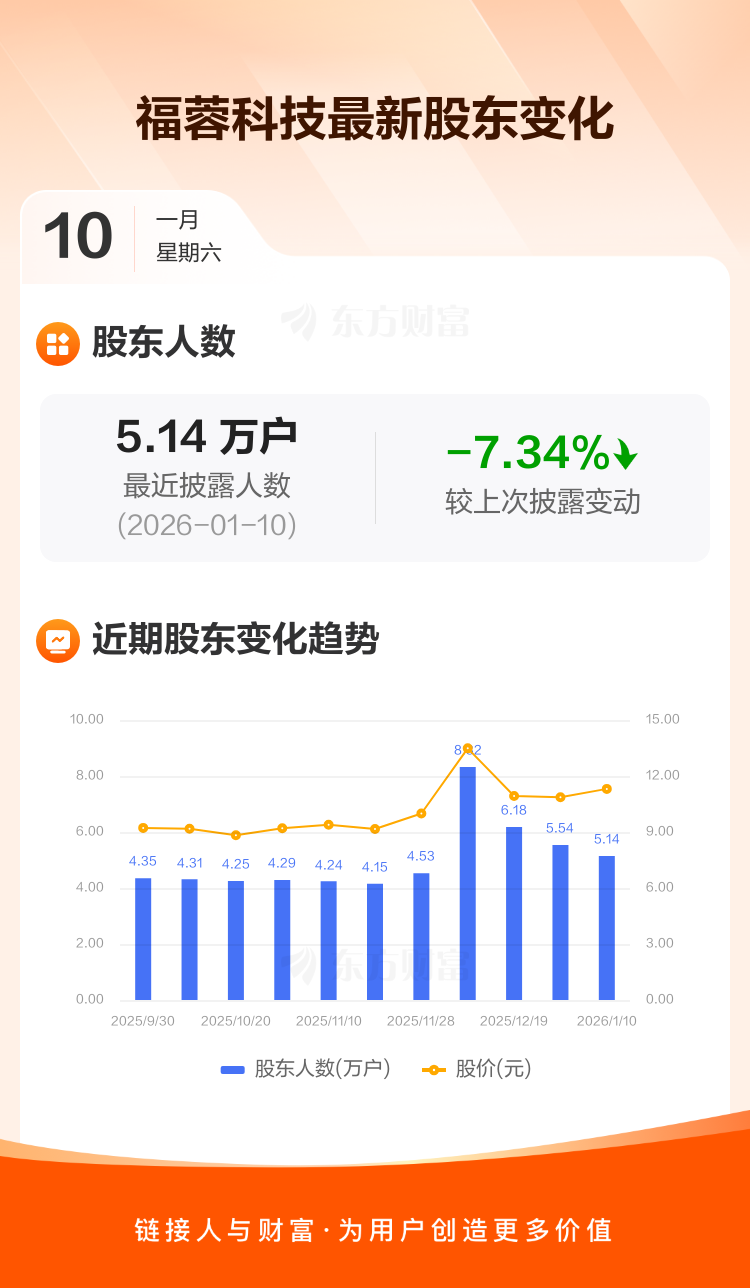 福蓉科技:截至1月10日最新股东户数5.14万户,较上期减少7.34%