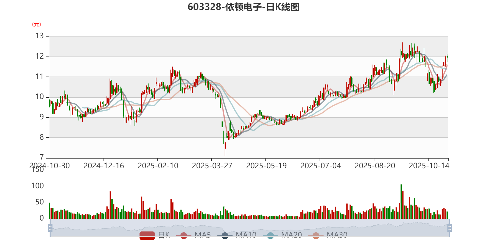 中证智能财讯依顿电子(603328)10月30日披露2025年第三季度报告。前三季度公司实现营业总收入30.53亿元,同比增长16.53%;归母净利润3.67亿元,同比增长0.06%;扣非净利润3.51亿元,同比下降1.07%;经营活动产生的现金流量净额为6.8亿元,同比增长107.20%;报告期内,依顿电子基本每股收益为0.367元,加权平均净资产收益率为8.78%。