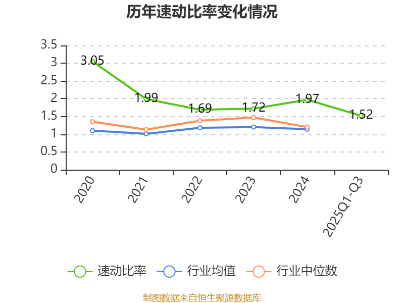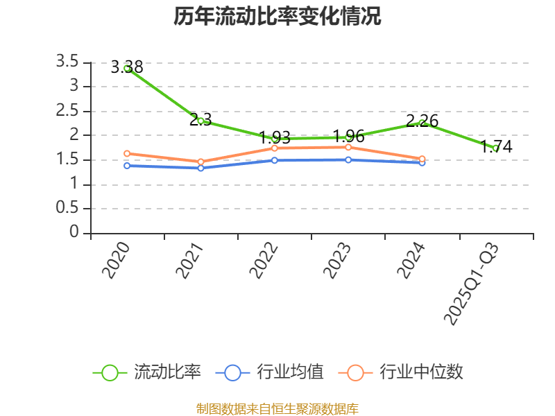 2025年前三季度,公司流动比率为1.74,速动比率为1.52。
