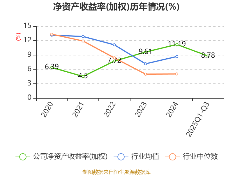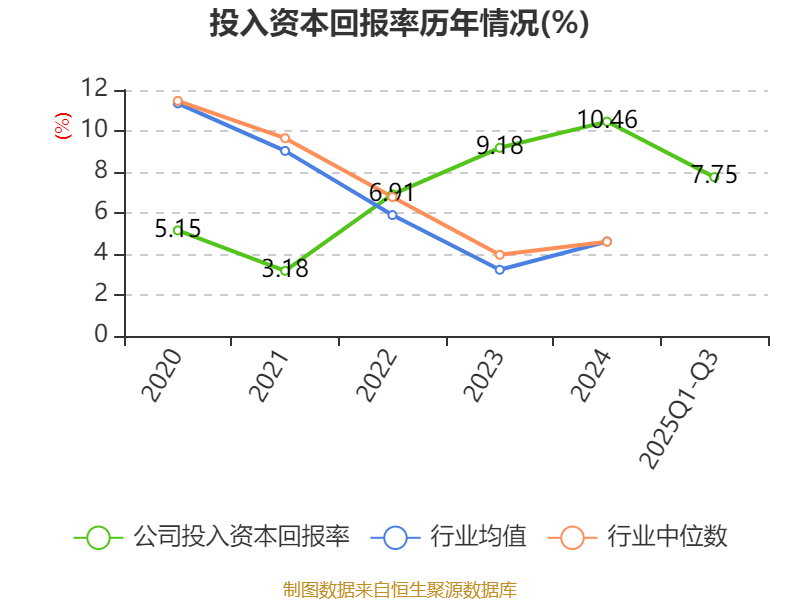 盈利能力方面, 2025年前三季度公司加权平均净资产收益率为8.78%,同比下降0.6个百分点。公司2025年前三季度投入资本回报率为7.75%,较上年同期下降1.15个百分点。
