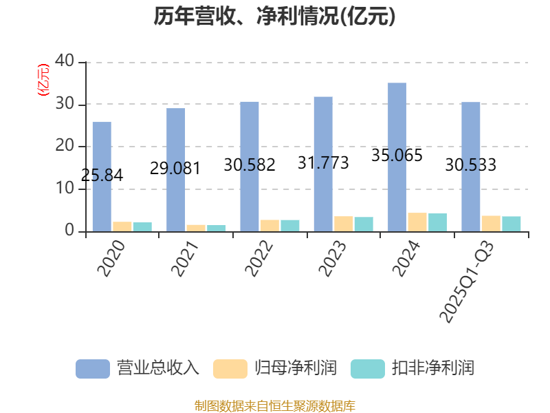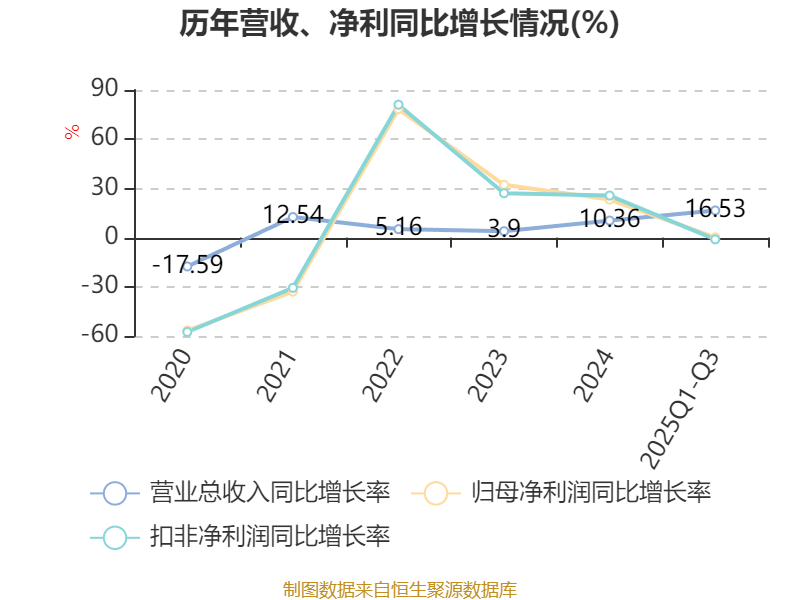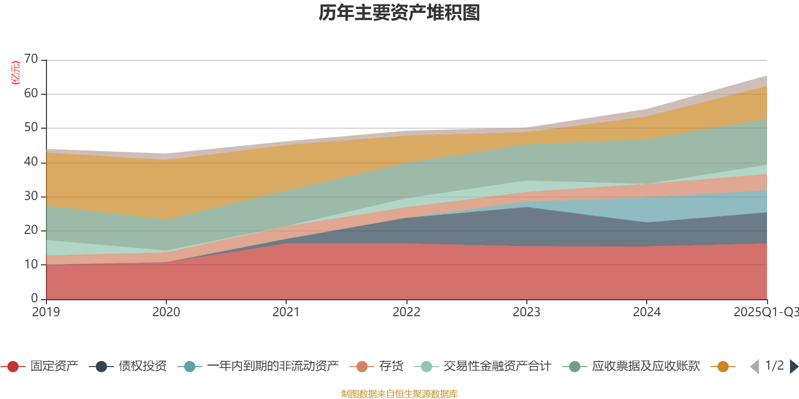 资产重大变化方面,截至2025年三季度末,公司交易性金融资产合计占公司总资产的4.13%,上年末为0;一年内到期的非流动资产较上年末减少11.04%,占公司总资产比重下降3.2个百分点;应收票据及应收账款较上年末增加2.93%,占公司总资产比重下降2.93个百分点;固定资产较上年末增加5.4%,占公司总资产比重下降2.9个百分点。